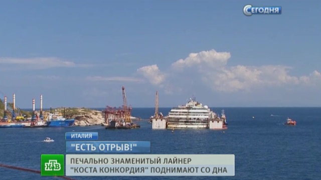 В сентябре судно привели в вертикальное положение, а сейчас возвращают ему способность плыть — пусть и не самостоятельно. По словам корреспондента НТВ Сергея Морозова, гигантский лайнер, потерпевший крушение у берегов острова Джильо, был невероятным зрелищем.