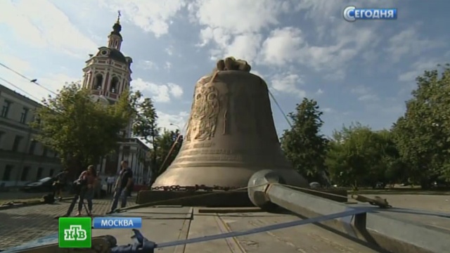 В Москву на огромной платформе доставили «Александра Невского» — главный голос возрождаемой звонницы Троицкого собора