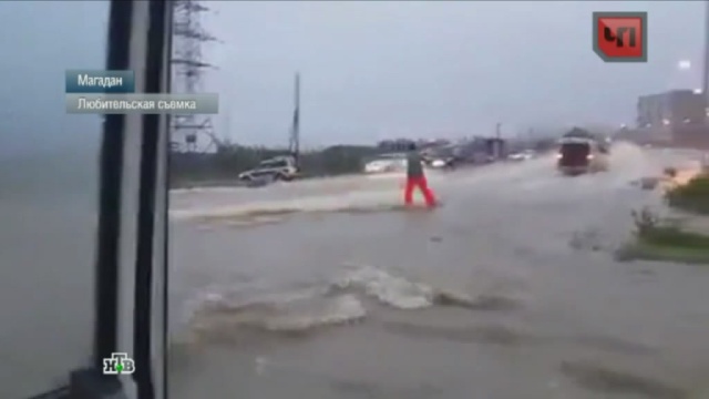 Непрекращающейся ливень в Магадане идет уже третьи сутки. За ночь выпала трехмесячная норма осадков — рекордная за восемьдесят лет наблюдений. Размыта федеральная трасса, целый район остался без электричества и воды. В зону ЧП попал детский лагерь. Спасатели отвозят детей в пункт временного размещения. Его организовали на базе еще одного дома отдыха — туда вода еще не добралась.
