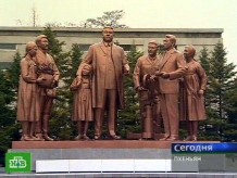 Сам великий вождь — из металла — стоит поблизости. Скульптурная группа показывает, как в Корее снимают кино. Нас сопровождает заведующий отделом внешних связей. Работы у него немного — за последний год Северная Корея отдала внешнему миру всего один фильм. И это уже много.