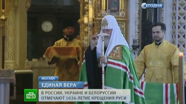 Впервые за много лет главные торжества прошли в Москве, а не в Киеве — городе, который первым принял православие на Руси. Богослужение в храме Христа Спасителя возглавил патриарх Кирилл.