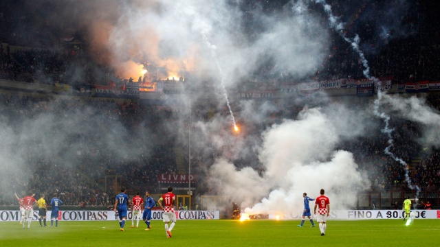 Болельщики сборной Хорватии устроили беспорядки на миланском стадионе «Сан-Сиро» во время отборочного матча четвертого тура чемпионата Европы 2016 года.