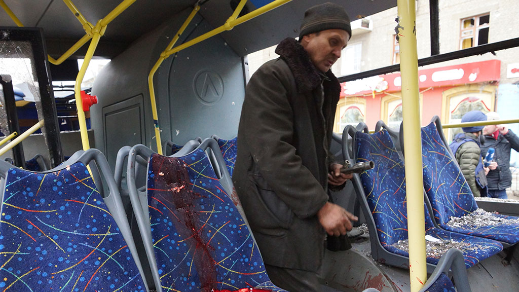 Из заявления СБ ООН: «Члены Совета безопасности ООН самым решительным образом осудили убийство 15 и ранения более 20 гражданских лиц, в том числе женщин и детей, в результате обстрела остановки общественного транспорта в Донецке 22 января».