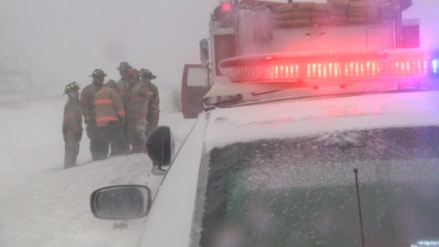 Причиной аварии, произошедшей на крупном шоссе, стали сложные погодные условия: в Огайо на протяжении нескольких часов продолжает идти снег с дождем.