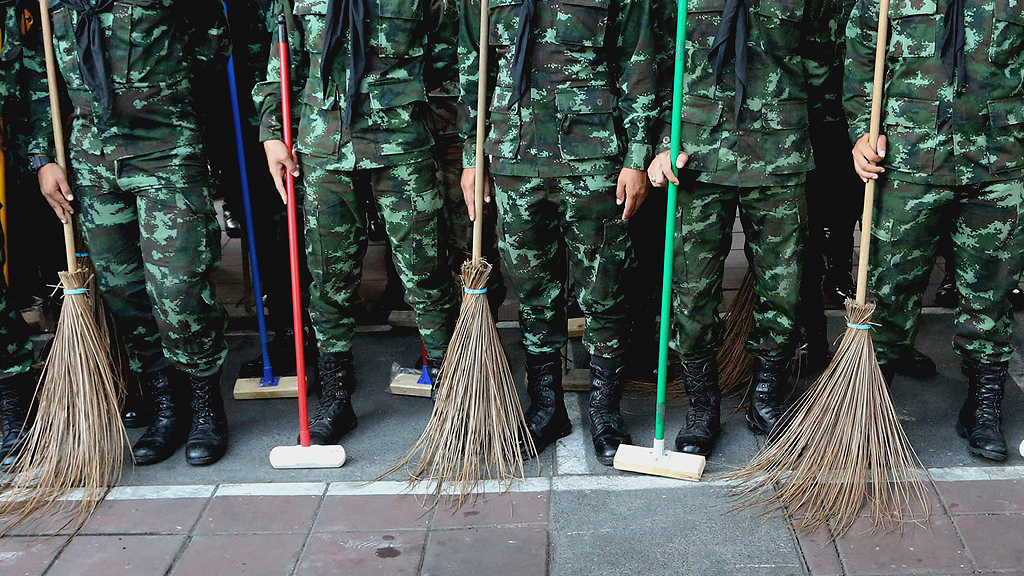 Как передает телеканал ARD, солдаты сначала покрасили каждую палку в черный цвет, чтобы они хоть