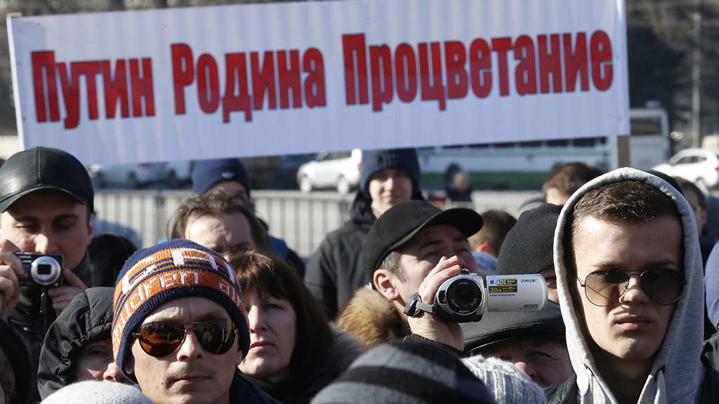В Москве завершился митинг «Антимайдан», организованный в память о трагических событиях, произошедших год назад на Майдане в Киеве.