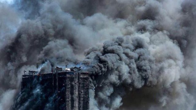 Здание вспыхнуло как свечка. Огонь быстро полностью охватил практически все этажи высотного дома. Пожар тушили с помощью вертолетов.