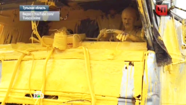 В результате ДТП в Тульской области на проезжую часть разлилось несколько тонн желтой краски.