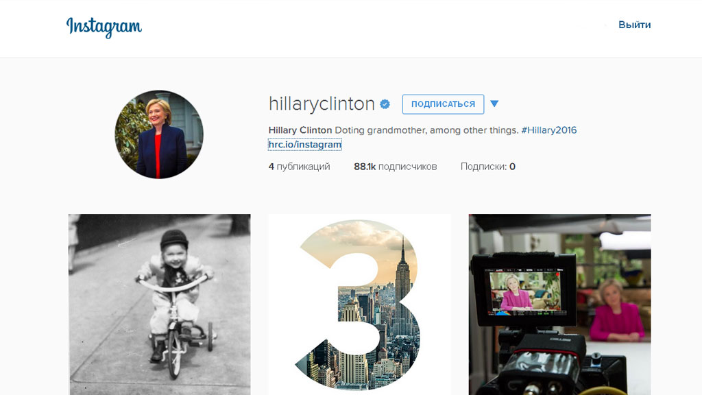 Бывший госсекретарь США и кандидат в президенты страны Хиллари Клинтон зарегистрировалась в социальной сети Instagram.