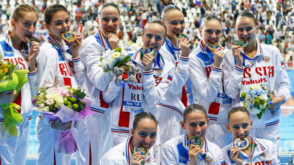 Российские синхронистки завоевали золото в произвольной программе групп на чемпионате мира по водным видам спорта, который проходит в Казани. Влада Чигирева, Елена Прокофьева, Анжелика Тиманина, Светлана Колесниченко, Алла Шишкина, Гелена Топилина, Александра Пацкевич и Мария Шурочкина стали лучшими с результатом 98,4667 балла.