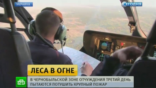 На севере Украины третий день не могут справиться с сильным пожаром. Там в чернобыльской зоне отчуждения горят десятки гектаров леса. С самолетов на полыхающие деревья сбрасывают воду. Это позволило сбить пламя с верхушек, однако низовой огонь и горящие торфяники потушить не удается.