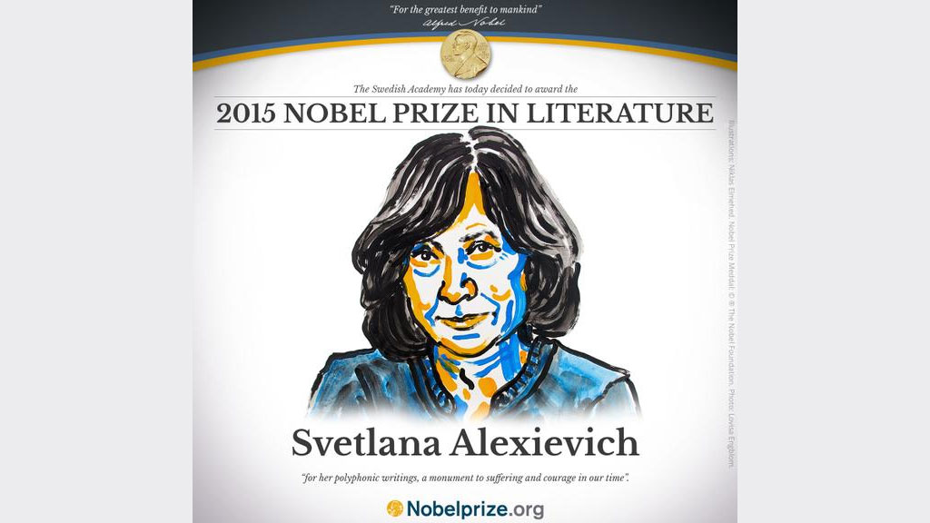 Как отметили в Нобелевском комитете, премия была присуждена Алексиевич «за ее многоголосное творчество — памятник страданию и мужеству в наше время».