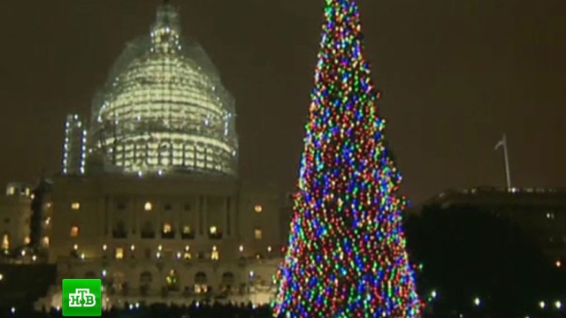 В Нью-Йорке зажглись огни на главной рождественской елке. Дерево установили на площади Рокфеллер-плаза . Ель высотой с 7-этажный дом украсили гирляндой из 45 тысяч лампочек, а на верхушке установили хрустальную звезду.