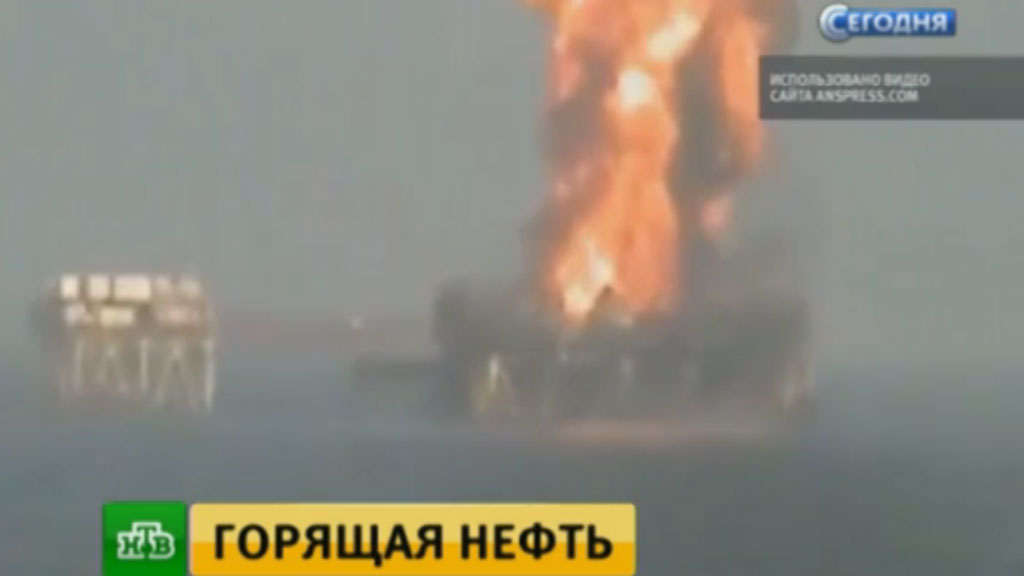В Каспийском море после пожара на нефтяной платформе продолжается