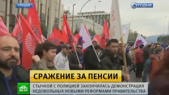 Столкновениями с полицией закончилась в Афинах демонстрация против пенсионной реформы. На улицы греческой столицы вышли больше 40 тысяч человек.