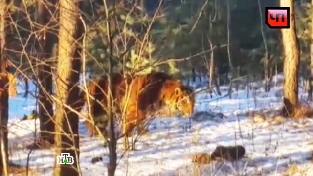 На кадрах видно, как хищник разгуливает по снегу между деревьями. Ветеринар местного зоопарка выстрелил в него усыпляющим дротиком, и когда тигр «отключился», его связали, надели намордник, а затем силами пятерых мужчин загрузили в кузов фургона и отвезли в зоопарк.