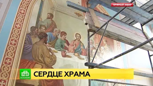 Корреспондент НТВ Юлия Олещенко одной из первых увидела обновленные своды храма.
