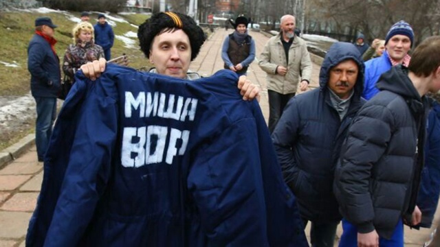 Жители Перми подарили председателю партии ПАРНАС Михаил Касьянову ватник с надписью «Миша вор».