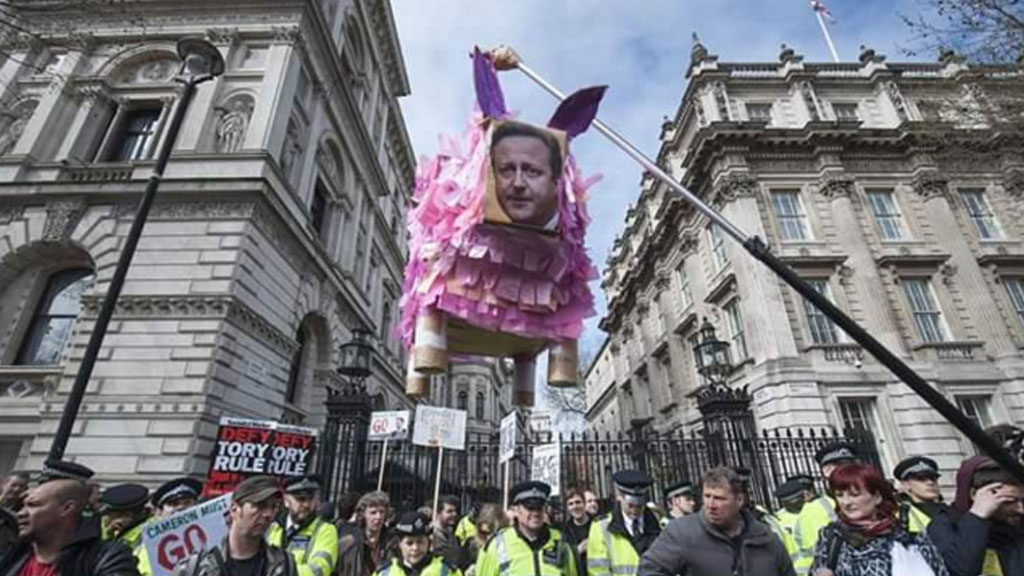 Поводом для протестов стало опубликованное на прошлой неделе «панамское досье», в котором рассказывалось об офшорных активах многих мировых лидеров и знаменитостей. В документах упоминалось имя отца Кэмерона.