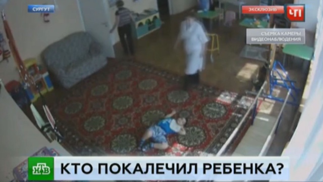 Вместо того, чтобы оказать помощь, другая воспитательница ударила ребенка по голове. После мальчика перенесли на пол, где он несколько часов лежал, игнорируемый остальным персоналом центра.