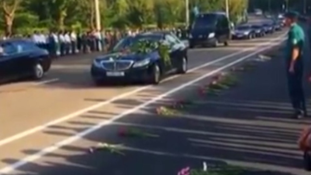 Как сообщает РИА Новости, от аэропорта до центра Самарканда выстроилась многотысячная цепь людей, многие из которых не сдерживали слез. Мужчины в основном одеты в черные брюки и белые рубашки, женщины — в национальные платья. Они принесли с собой розы и кидали их под колеса кортежа, практически создав цветочную дорогу.