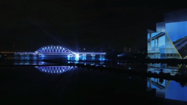 На церемонии закрытия «Круга света» зрителям показали Керченский мост, созданный из лазеров и фонтанов. При помощи видеопроекции продемонстрировали все этапы его строительства, начиная от погружения свай и заканчивая сборкой металлических пролетов и судоходных арок — как раз на этом этапе сейчас находится строительство моста реального, движение по которому обещают открыть к концу 2018 года.