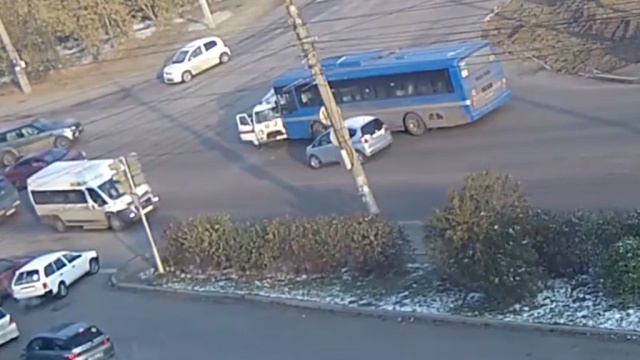 Двое медиков пострадали в результате ДТП на перекрестке в Иркутске с участием скорой помощи и маршрутного автобуса.