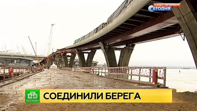 Сегодня в торжественной обстановке произвели так называемую смычку двух частей самой протяженной и самой высокой пешеходной переправы Петербурга. Эти неразводные 490 метров соединят Приморский район и Крестовский остров. Строить мост начали по требованию ФИФА к чемпионату мира 2018 года.