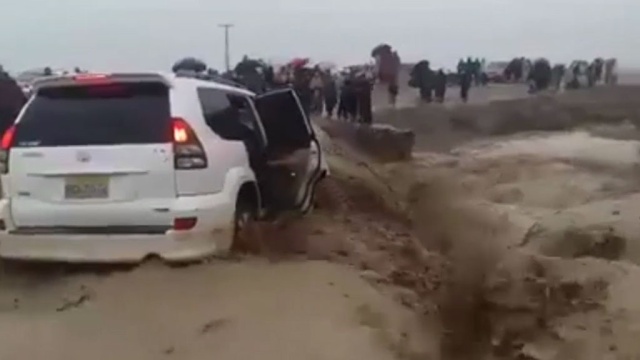 Сильные дожди вызвали наводнения и значительные разрушения. На кадрах, которые появились в Сети, запечатлено, как внедорожник, в котором находятся люди, затягивает в воронку, образовавшуюся в потоке воды и грязи. Машина в считаные секунды полностью скрывается под мощными потоками. Инцидент произошел в городе Чаман.