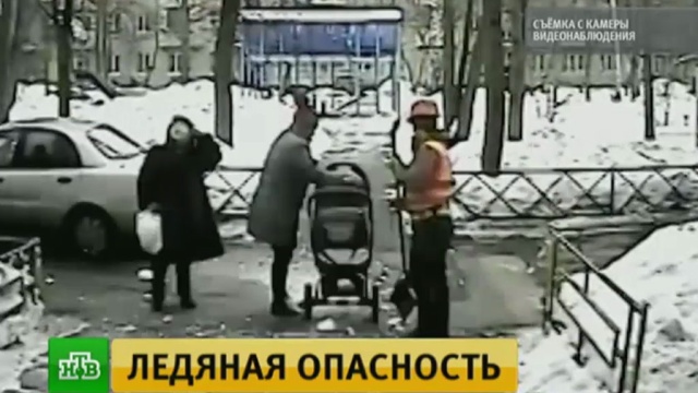 В Москве полиция задержала дворников, сбросивших с крыши кусок льда на двухмесячного ребенка.