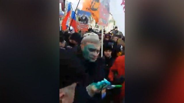 Неизвестный мужчина плеснул в лицо оппозиционного политика зеленкой перед началом акции памяти Бориса Немцова. Полиция увела нападавшего, а Касьянов с зелеными пятнами на лице возглавил шествие колонны.