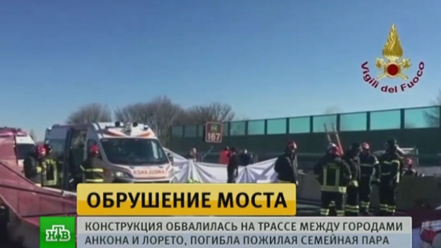 В итальянской провинции Анкона обрушился автодорожный мост, идущей вдоль побережья Адриатического моря. В результате погибла пожилая семейная пара, проезжавшая в этот момент под эстакадой.