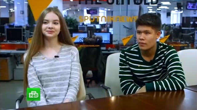 Их города разделяют тысячи километров и таможенных постов, а ребята рядом, плечом к плечу. Они пришли на экскурсию в информационное агентство Sputnik, которое и помогло телеканалу НТВ найти этих талантливых юных артистов. Если с телевизионной кухней они хотя бы немного разобрались, то с радиоэфирами им сталкиваться еще не приходилось.