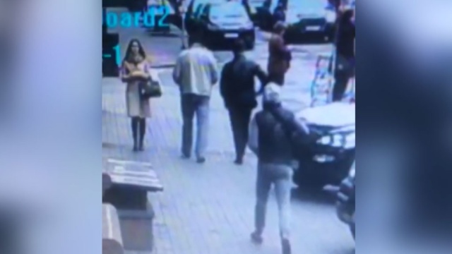 На кадрах записи видно, как киллер в темной куртке подходит сзади к Денису Вороненкову, идущему по улице в сопровождении охранника.
