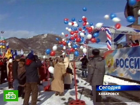 Празднование Дня народного единства уже идет на востоке страны. В Хабаровске состоялось многотысячное шествие, начались народные гулянья. Памятуя об эпидемии гриппа в регионе, многие горожане надели маски.
