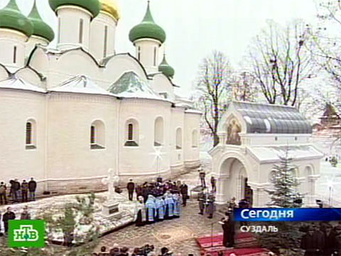 Большие торжества, на которые приехал президент Медведев, проходят в Суздале. Именно в этом городе в начале XVII века и было организовано ополчение. Сегодня там освятили часовню князя Пожарского. Более ста лет назад ее построили всем миром, а