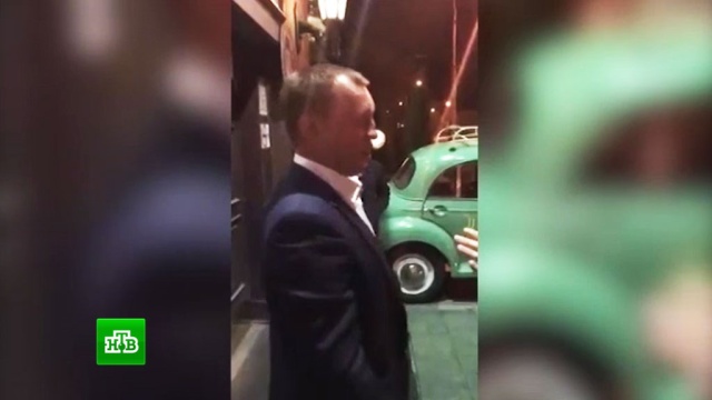 На любительских кадрах отчетливо видно, как он сначала несколько раз хватает представительницу прекрасного пола за руки, толкает ее, а после, заметив съемку, переключается на ее подругу и наносит удар.