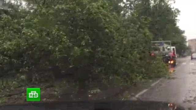 На столицу обрушилась гроза со штормовыми порывами ветра. В распоряжении НТВ оказалось видео, снятое на улице Гарибальди на