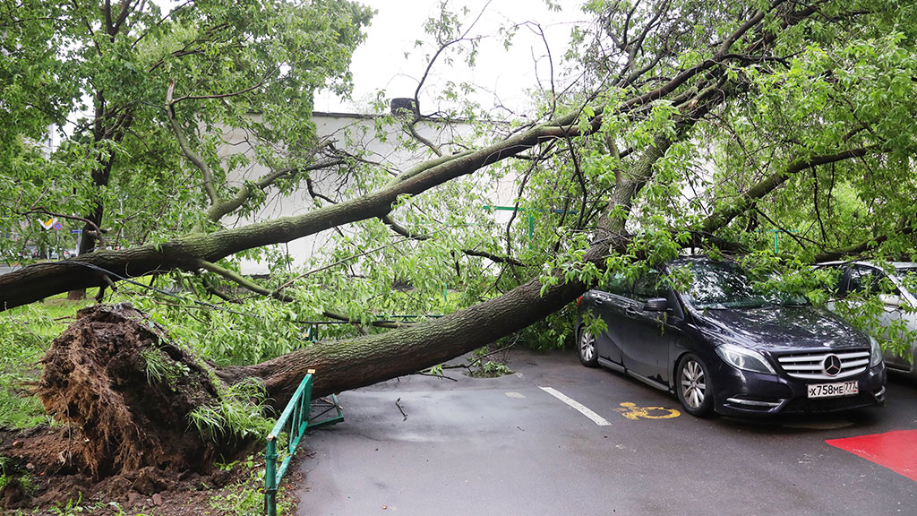 На Москву в понедельник днем обрушился ураган, который вырывал с корнем деревья. Некоторые из них упали на припаркованные автомобили. Есть погибшие и раненые.