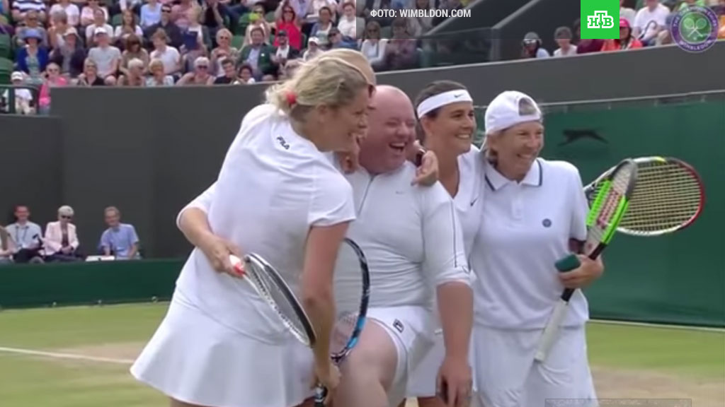 Перед одной из подач выставочного матча Уимблдона Ким Клейстерс обратилась к зрителям с вопросом, как ей лучше подавать. Один из болельщиков крикнул, что нужно подавать «в туловище», после чего Клейстерс вместе с теннисистками Кончитой Мартинес, Ренне Стаббс и Андреа Джегер вручила ему ракетку и даже переодела в белые юбку и футболку, чтобы его экипировка соответствовала правилам турнира.