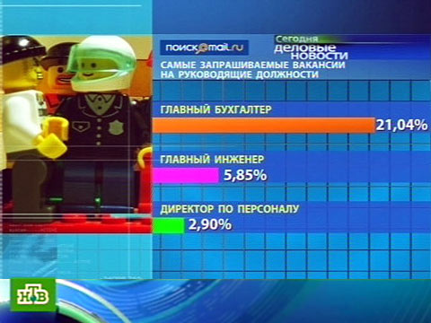 Среди руководящих должностей определился абсолютный лидер, передает НТВ. С четырехкратным отрывом вперед вырвался главный бухгалтер. Также популярны вакансии на должность главного инженера и директора по персоналу.