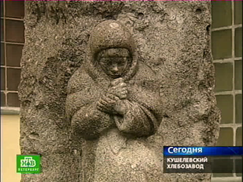 Цветы к необычному мемориалу возложили сегодня сотрудники Кушелевского хлебозавода. Гранитную фигуру маленькой ленинградки, прижимающей к груди кусочек хлеба, установили во дворе предприятия 12 лет назад.