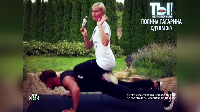 После кормления грудью звезда наняла личного тренера. Он 3 раза в неделю приезжает к Гагариной домой и выжимает из нее все соки. Интенсивная разминка убирает лишние складки на животе и боках, а махи назад с сопротивлением избавляют от целлюлита и подтягивает ягодицы.