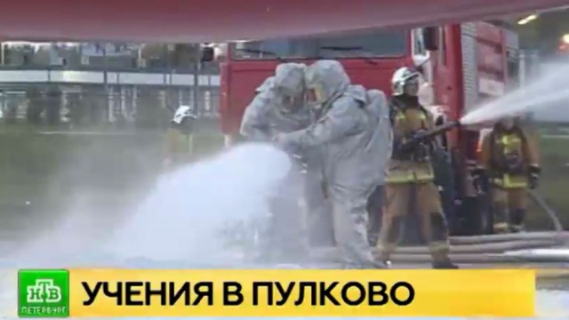 Как сообщает корреспондент НТВ Антон Зыков, основная легенда учений касалась тушения воспламенившегося самолета на полосе. На условный сигнал о ЧП экстренные службы прибыли за три минуты. Пожар ликвидировали с помощью воды и пены. Тогда огонь не охватит весь фюзеляж и катастрофы не случится.