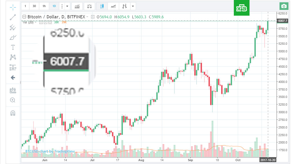 Отметим, что предыдущую отметку — в 5 000 долларов — биткоин перешагнул совсем недавно, в сентябре этого года. А уже к середине октября стоимость составила 5 658 долларов.