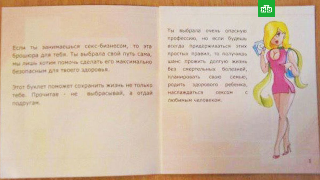 В памятке, кроме правил контрацепции, есть советы для проституток «на каждый день». Например, как надо брать оплату с клиентов, как договариваться с «подругами» и таксистами о сигналах помощи, какие лучше выбирать места для «обслуживания». Кроме того, в брошюрах старшеклассницам рекомендовали избегать пьяных клиентов и изложили правила поведения на случай, если придется обслуживать сразу нескольких мужчин.