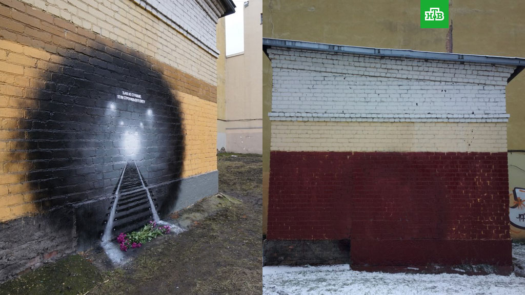 В Санкт-Петербурге закрасили граффити, которое активисты местной арт-группы нарисовали на стене одного из зданий в память о жертвах теракта в петербургском метро.