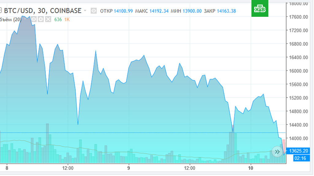 По данным биржи Coinmarketcap, по состоянию на 10:55 мск самая популярная криптовалюта торгуется на уровне 13 тысяч 708 долларов за биткоин.