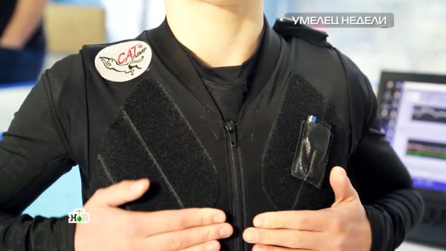 У Алексея Мишина есть и еще один «умный» жилет — он помогает держать правильное положение руки при выполнении элемента.
