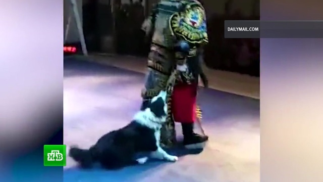 Появление нового персонажа вызвало море восторга — смеялись и в зале, и за кулисами. А вот актер, на котором повисла собака, смог сохранить невозмутимость. Сцену он доиграл до конца.